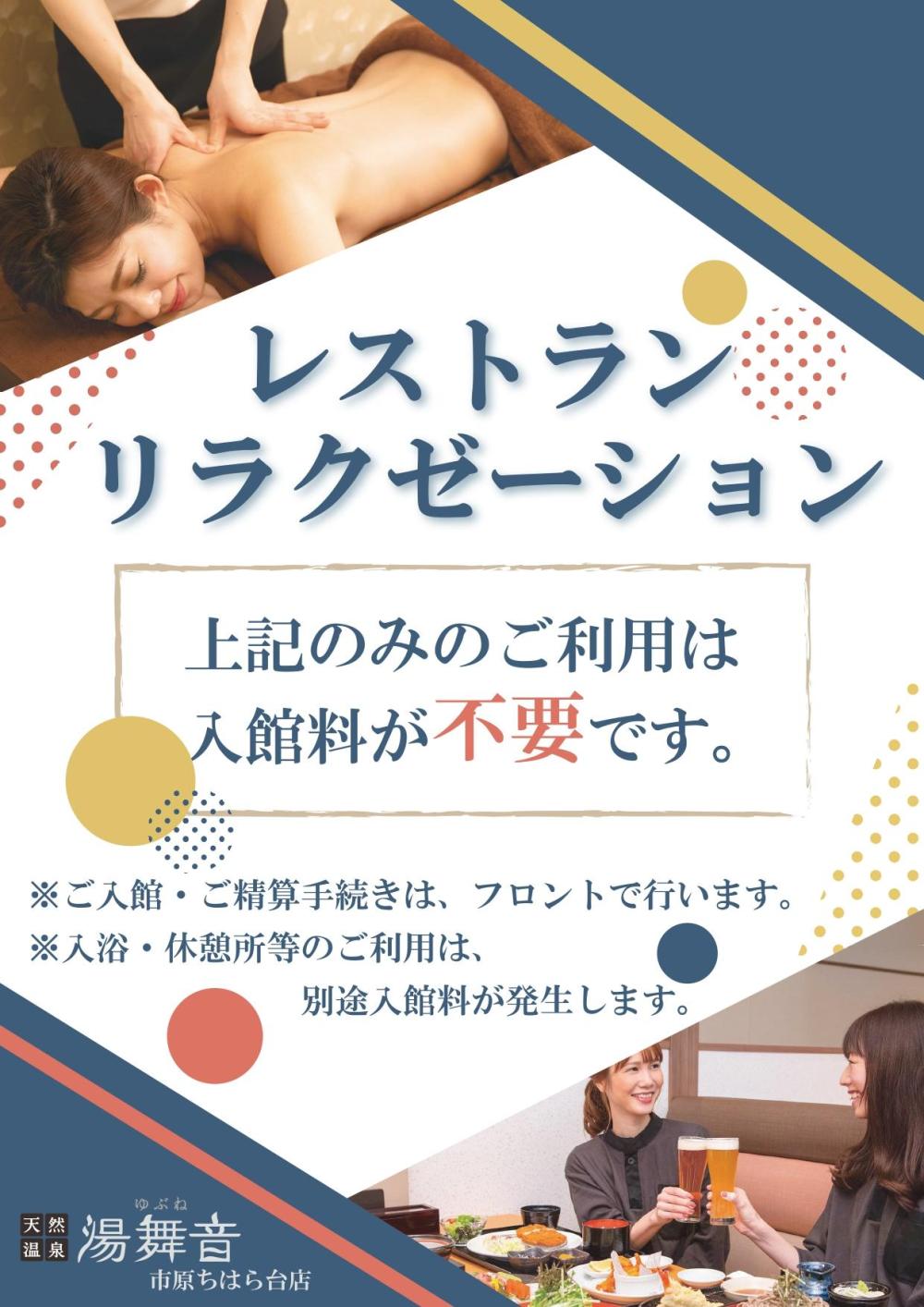 お風呂は入らないけど、「お食事のみ、施術のみ利用したい」方は