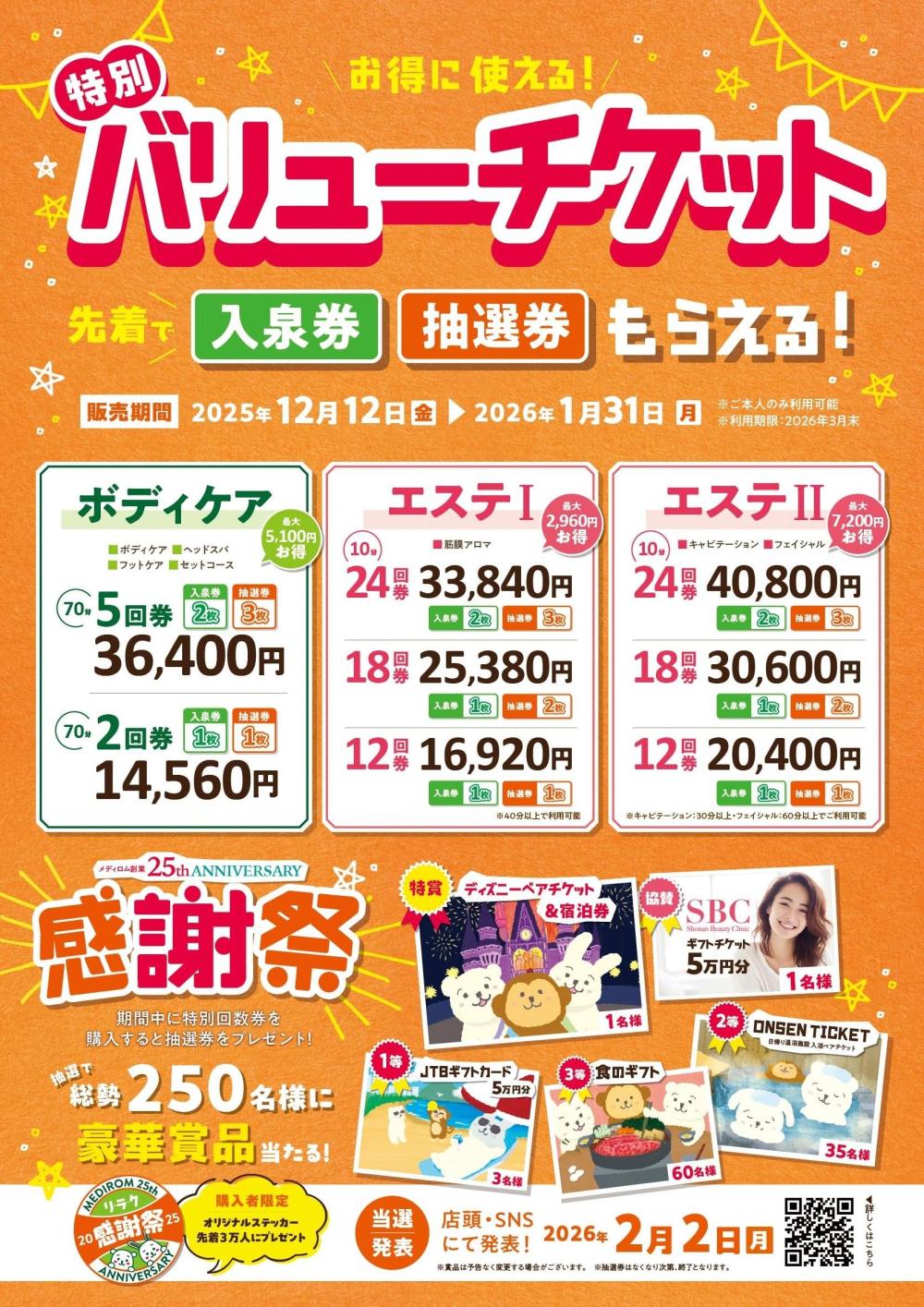 12月12日〜1月31日までの期間限定のバリューチケット販売となります!